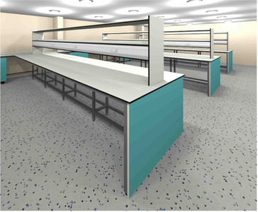 From these plans the client came back with their comments and Marc started to change the drawings to accommodate these, including adding reagent shelving to give more storage above the worktop. Stand alone tables at the end of the peninsular benches, that can be moved if needs be, was also added rather than island benching to give the option to extend workspace or separate a workspaces if required.